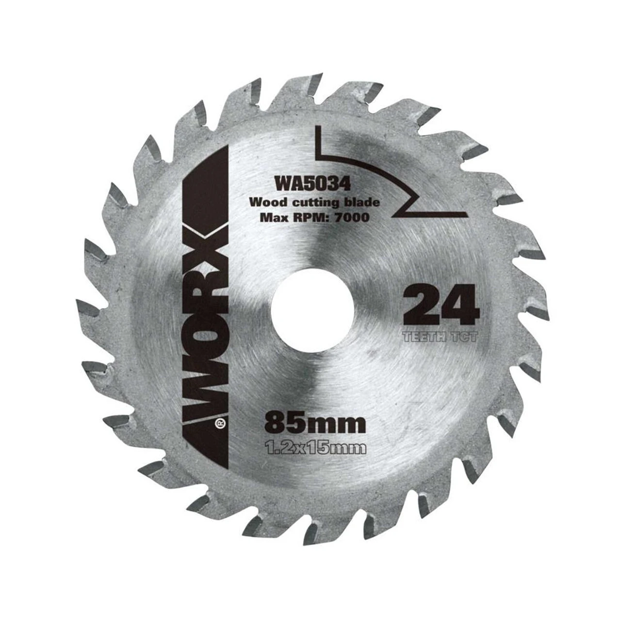 The Worx WA5034 Worxsaw replacement blade (85mm, 24 teeth) is a strong and durable blade suitable for cutting through wood. The 24 segment blade allows you to cut straight lines and is perfect for providing plunge cutts and long rip cuts. Compatible with the following Worxsaw models: WX423, WX426 and WX523.
