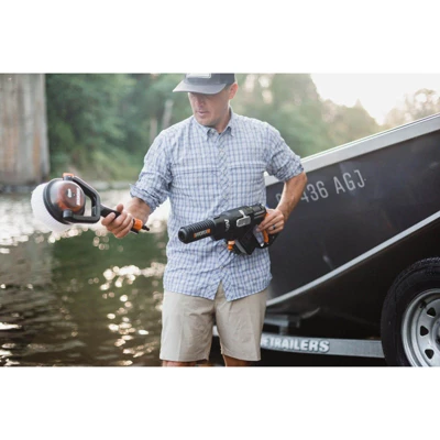 When water pressure alone, or hand scrubbing, won’t get your hard surfaces clean, then add the power of the Hydroshot Outdoor Power Scrubber with Hard Bristles. Clean gross, stubborn dirt and debris off the deck. Make your brickwork look like new. Any scrubbing job that would normally require hours of manual labor is now easier with this power brush attachment. The rotational motion of the hard bristles in combination with the water stream from the Hydroshot dislodge stuck-on grime. The perfect spring cleaning companion, it makes patio furniture look like new, cleans up your fences, and takes the tough stuff off the undercarriage of your cars or trucks (though keep this brush away from the paint job, we have a softer brush for that). It’s a great tool to use up at the cabin or campsite to tackle all the dirt that accumulates there. Snaps on and off quickly and stays securely in place so it can really get in there and scrub. The outer, stationary bristles provide the first level of scrubbing, and then the rotating inner bristles do the hard work. Let the Outdoor Power Scrubber give you the cleanest home you’ve ever had with less work than you’d think.