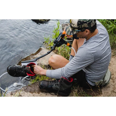 The combination of this 7in Cleaning Brush Attachment and the low-pressure water stream coming from the Hydroshot is an effective combination at scrubbing away stuck-on grime and goo. It’s great for windshields and grilles, deck furniture, even the whole deck. Anywhere water pressure won’t quite do the trick, this cleaning brush will come in and lend a hand. You can even pop it off and use it all by itself as a hand scrubber. It installs on either the Hydroshot’s power nozzle or at the end of the long cleaning lance. And it snaps in quickly and securely. It’s a perfect companion for spring cleaning outside your home or up at the cabin. Anything that needs a good, thorough washing will look like new when you’re done with it. And its durable design means you’ll be using it for many seasons to come.