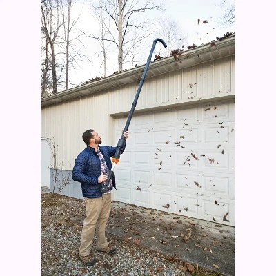 Keep everyone in the family happy by keeping yourself off a ladder or the roof when you clean out the gutters. The Worx LEAFJET Blower GUTTERPRO Attachment is the safer, easier way to blow leaves and debris from your gutters and roof valleys. This system is so good we couldn’t keep it for ourselves and made it to fit most gas, electric, and battery-operated cordless blowers from all the major brands, so there’s a 90% chance it’ll securely attach to the blower that’s already in your garage. It also includes an adapter to fit the new Worx 20V WG543 LEAFJET Blower. (Note: This model of the GUTTERPRO was not designed to work with the 40V WG585 LEAFJET.) The whole kit only weighs 2.6 lbs, so you’ll be able to hold it high in the air without any trouble. The adapter fits right over the tube of your blower and cinches tight for a solid seal and excellent airflow. It provides 11 ft. of total extension, which is more than enough to reach the gutters on most first stories. It’s backed by a 3-year warranty and it doesn’t require any tools to assemble or attach. Cleaning the gutters can be a dreaded, awkward, downright unsafe task. With the Worx LEAFJET Blower GUTTERPRO Attachment, it’s easy and kind of fun, and certainly the safest way to do it. Keep the ladder in the garage the next time you clean the gutters.