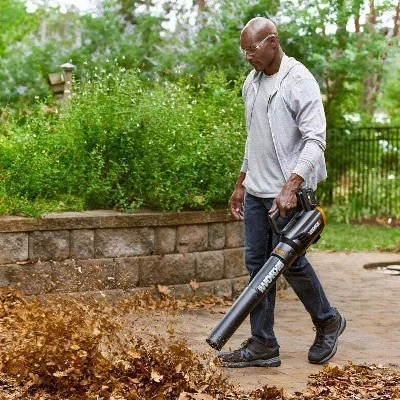 Whether you’re looking for an extra battery to beef up your Power Share collection or you just want to double your runtime, this 360 cfm – 20V TURBINE Blower comes with two 20V 2.0Ah batteries and a 0.4-Amp charger. It’s perfect for larger lawns, or as part of a larger tool collection. Dynamic airflow intake pulls air in from the back and feeds the TURBINE fan that powers this blower. It keeps all that wind running in one direction for more efficiency and quieter operation than traditional leaf blowers. With 2 speeds, you have the versatility to handle a variety of debris-clearing tasks. Just flick the switch on the top of the handle to go from Low, at 60 mph and 225 cfm, to High, for 75 mph and 360 cfm. Low speed is meant for clearing out tight corners and smaller areas (if you go full-speed in an enclosed section of the porch or deck, you’ll just make a mess). And high speed gives you enough power to round up all the leaves and debris on the open lawn. The comfortable overmold rubber grip gives you excellent control, so you can direct all that airflow with just one hand. The specially designed Hyperstream nozzle focuses the air just where you need it. And without a cord tying you down, you’re free to roam and won’t have to worry about tripping or getting snagged. Plus, this leaf blower is backed by a 3-year limited warranty because we know you’ll love it and that it’ll keep your lawn, driveway, deck, and patio looking tidy and clean.