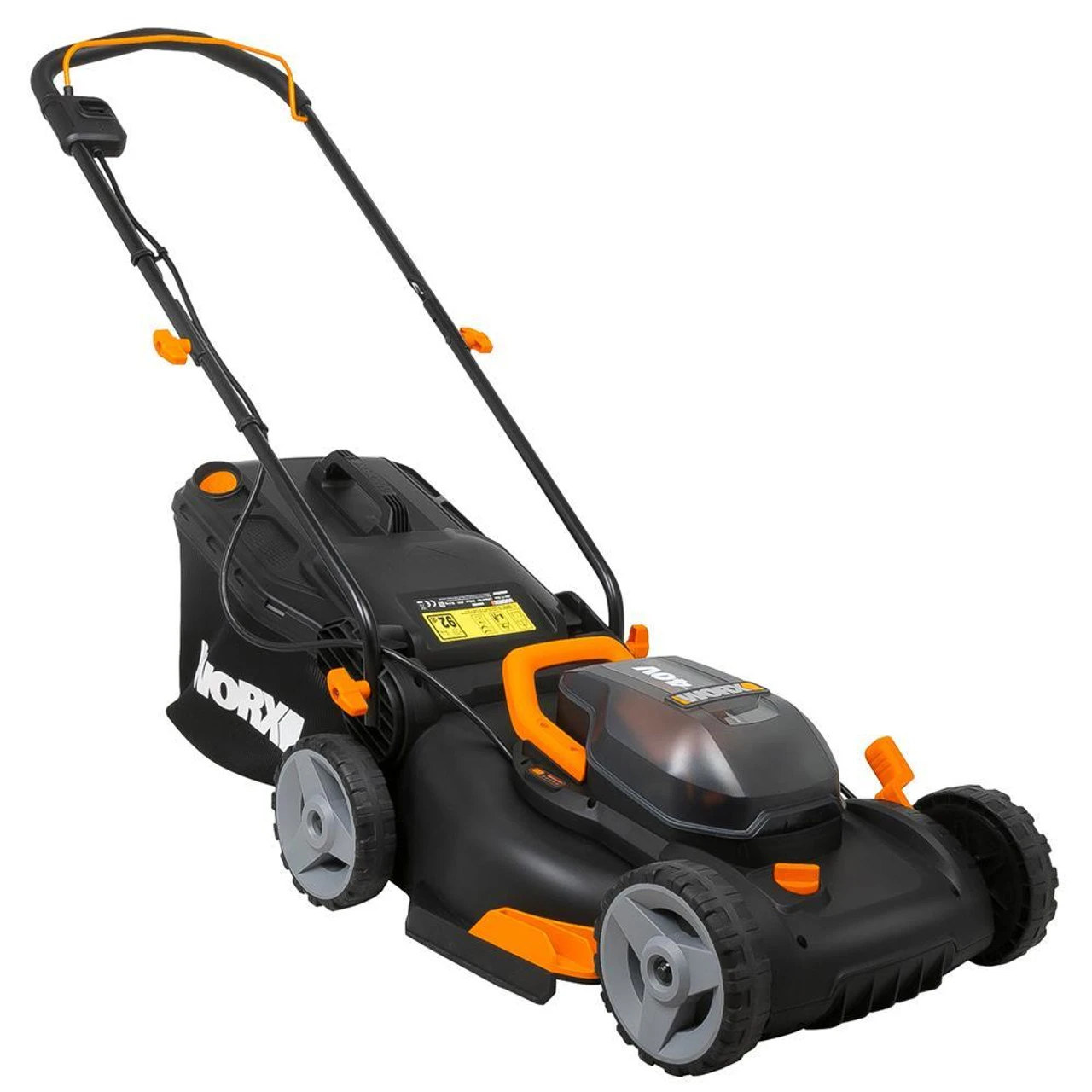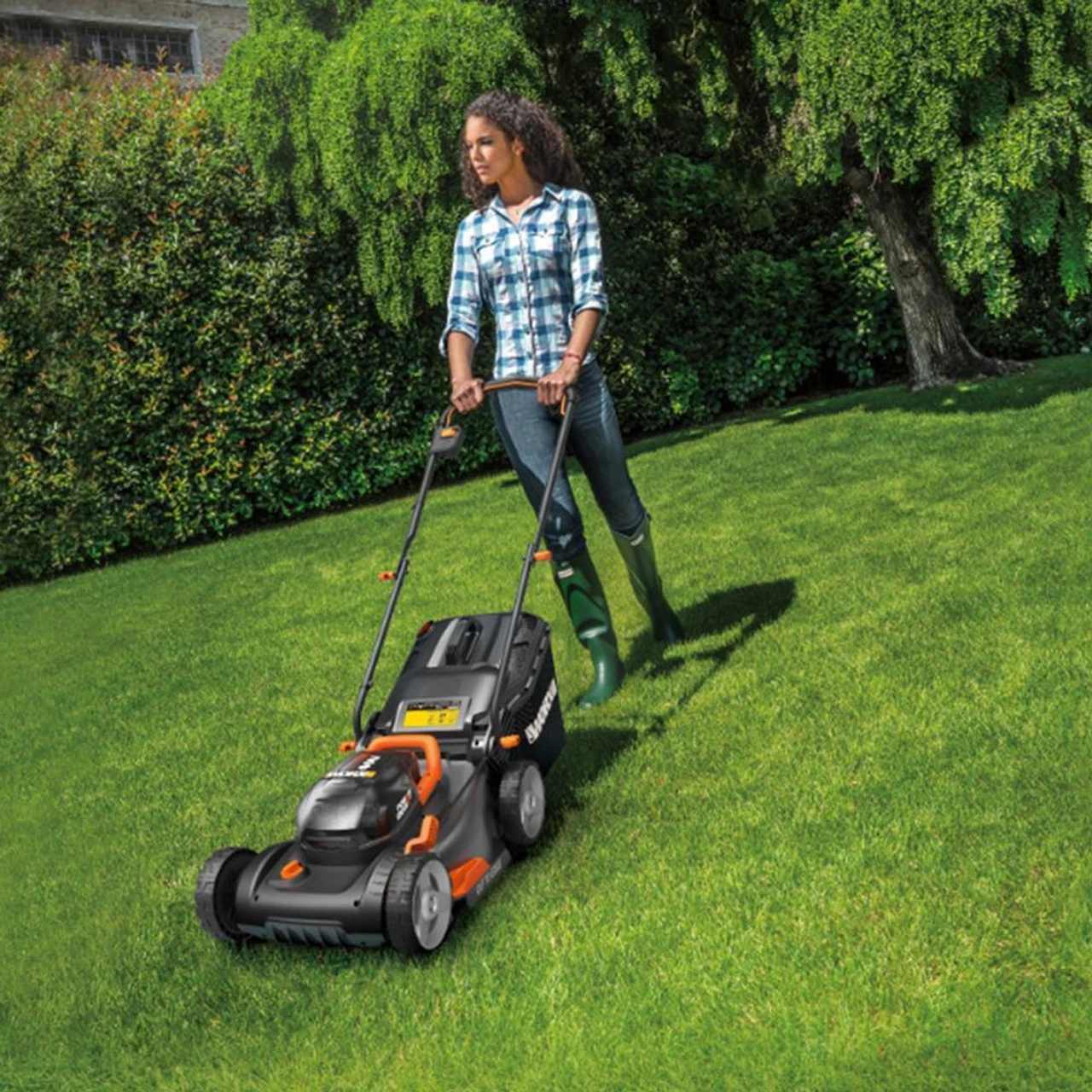 The WG743E lawnmower from Worx features intellicut technology that adapts to conditions to help provide constant power even in desnse grass. One lever allows you to adjust the cutting height to 6 postions (20mm-70mm). Large 40cm cutting width and the ability to cut up to 460sq metres per charge means this lawnmower makes light work of most lawns. Includes a large 45l grass collection box. Fold flat handle for easy storage and a carry handle makes transport easy.