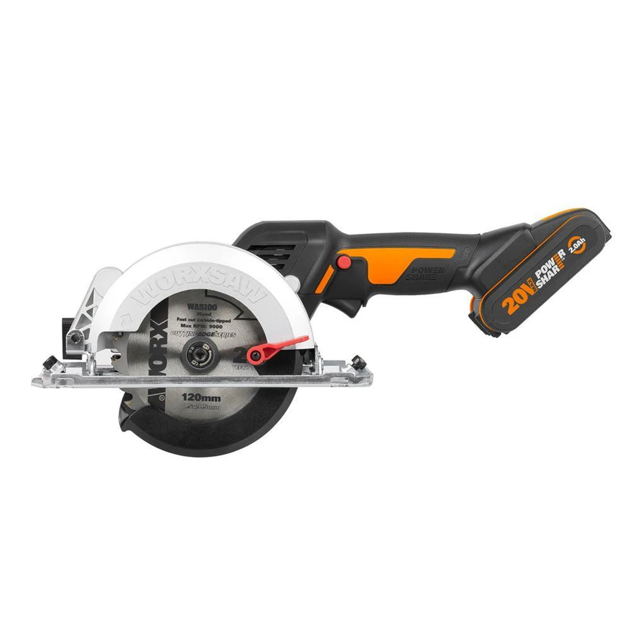 WORX WX531 20V XL WORXSAW 120mm Compact Circular Saw with battery, charger and case.